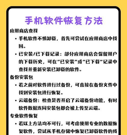 在电脑使用过程中,我们经常需要卸载不需要的软件或者清理系统垃圾。但是有时候会出现误删或者需要重新使用已经卸载的软件的情况。在这篇文章中,我们将会介绍一些简单易懂的恢复方法,让你再次使用你曾经喜欢的软件。