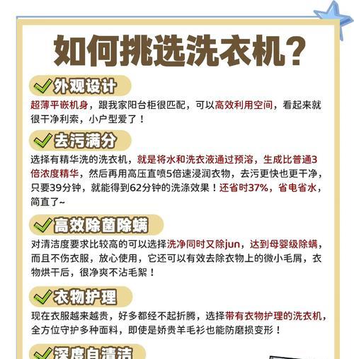 在如今的快节奏生活中,洗衣机成为了家庭必不可少的电器之一。但市场上的洗衣机种类繁多,价格差距很大,如何选择适合自己的洗衣机呢?本文将从多个方面为您介绍如何选择适合自己的洗衣机。