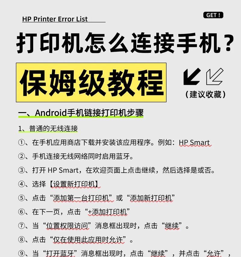 在使用手机连接打印机之前,首先需要选择一款适合自己的打印机。一般来说,支持Wi-Fi和蓝牙无线连接的打印机比较适合用于手机打印。