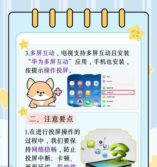 通过本文的介绍,相信大家已经掌握了华为手机投屏到电视的技巧和方法。在使用中如果遇到问题,可以根据本文提供的解决方法进行排查和修复。通过投屏技术,可以享受更好的视听体验,让家庭娱乐更加丰富多彩。