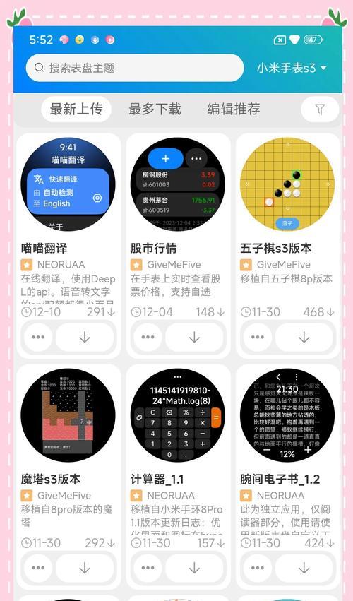 浏览或搜索可自定义的表盘样式,选择一个您喜欢的样式进行下载并应用。