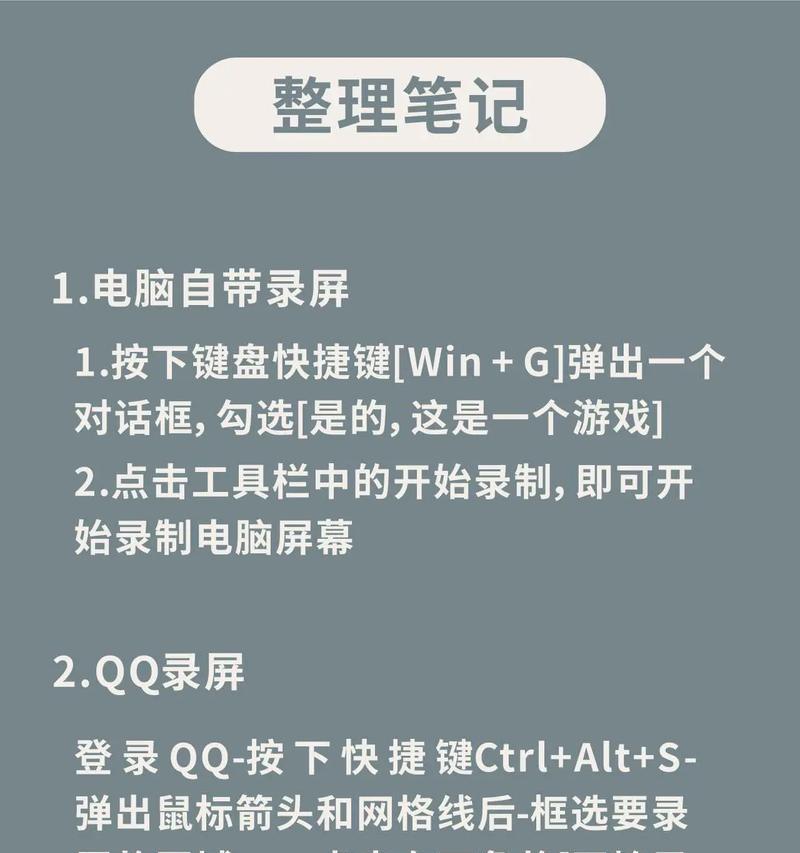 电脑上的录屏技巧也很重要。在这里,我们将介绍一些电脑上的录屏技巧,帮助您更好地记录屏幕上的内容。