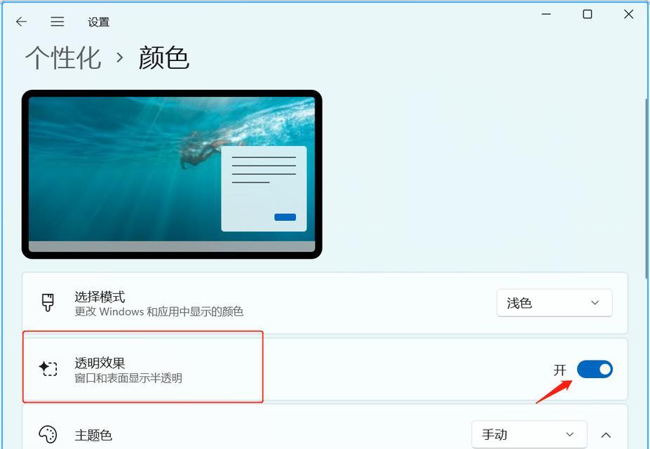 在Windows10系统中,除了手动设置透明度之外,还可以开启“透明度效果”来让任务栏变得更加透明。在任务栏设置页面中,找到“透明度效果”选项,将其开启即可。