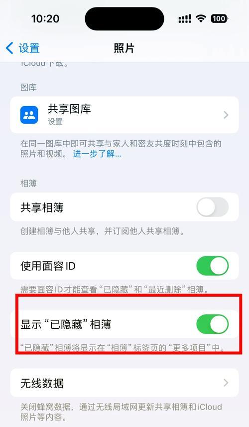 在“照片”设置中,您将看到一个名为“隐藏照片”的选项。通过启用此选项,您将能够访问和查看您隐藏的照片和视频。