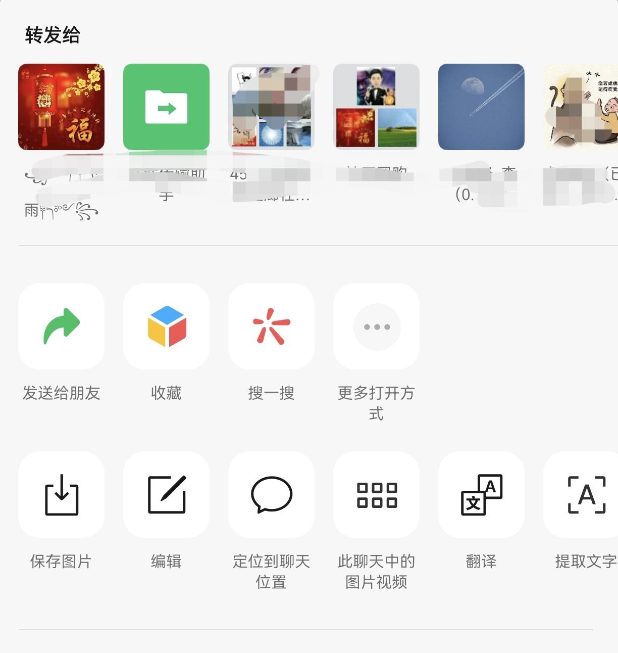 在使用微信聊天的时候,经常会发送一些图片,打开图片之后长按2秒,会出现图片的相关功能,比如转发、收藏、搜一搜、保存图片、编辑、翻译、提取文字等功能,每个都是非常实用的。