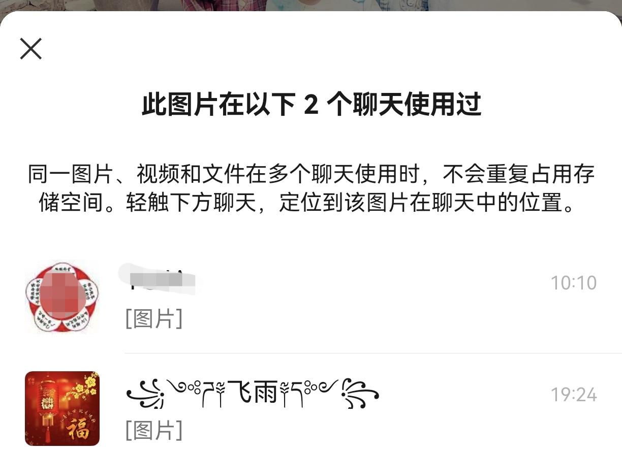 点击这个功能之后,可以看到这张图片都在哪些微信好友的聊天记录中出现过,也会显示具体的微信好友列表。