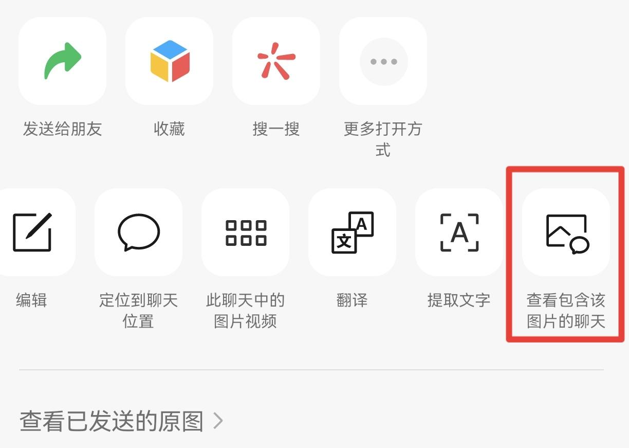 通过新旧版本的对比可以看出,新版本的界面中新增了一个“查看包含该图片的聊天”的功能。