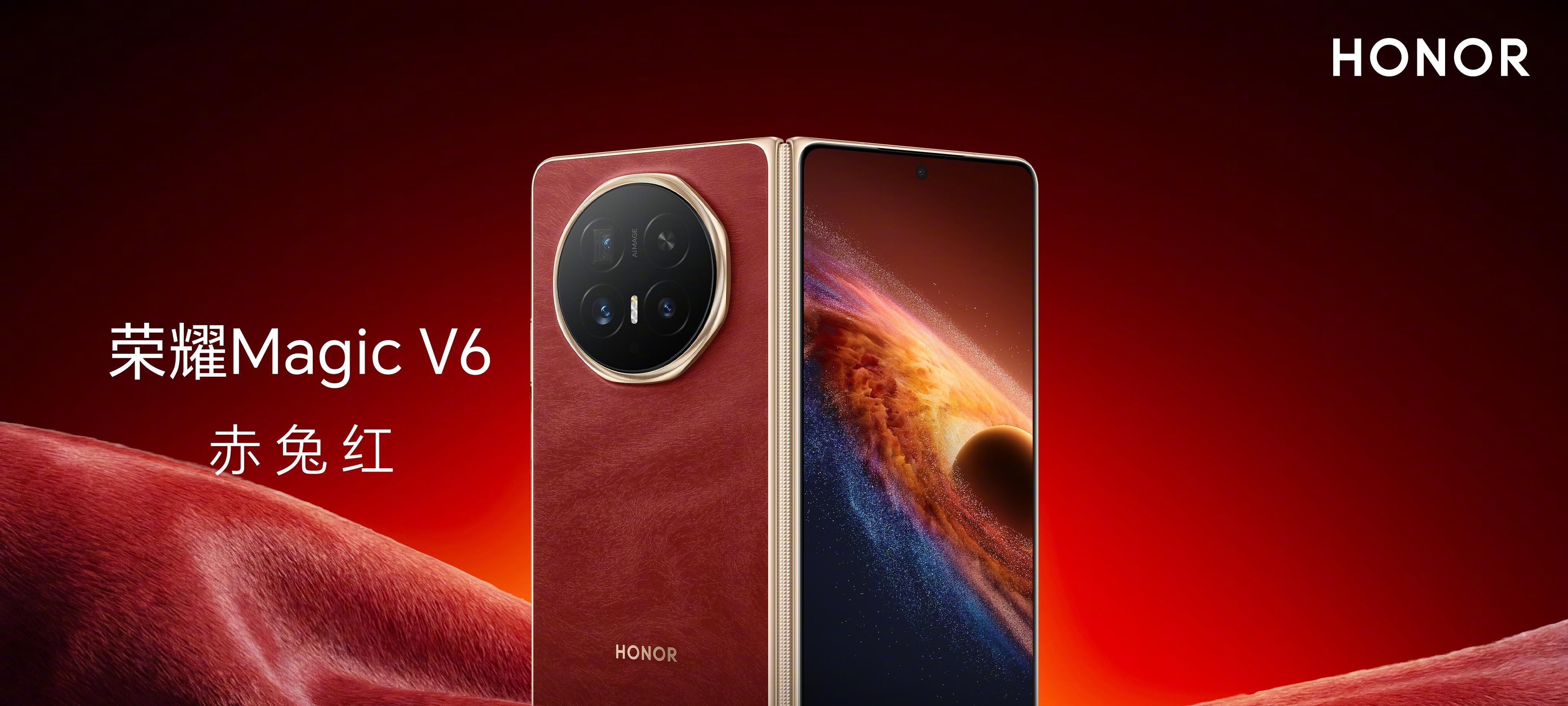 荣耀Magic V6正式官宣,将于3月10日在深圳正式发布,目前官方已经公布了四款配色的渲染图,这次主打的新配色是赤兔红。目前该机已经在MWC2026上正式发布,核心卖点和完整参数已经曝光,最惊艳的地方是7150毫安时电池和超轻薄荣耀鲁班架构,让我们一起先睹为快。