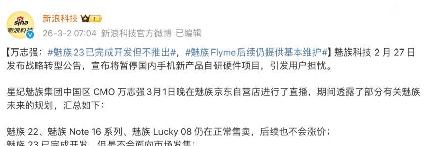 目前在售的魅族22、魅族Note 16系列以及魅族Lucky 08都会继续销售,官方也明确不会涨价;Flyme不会再有大版本更新,但基础维护会持续。