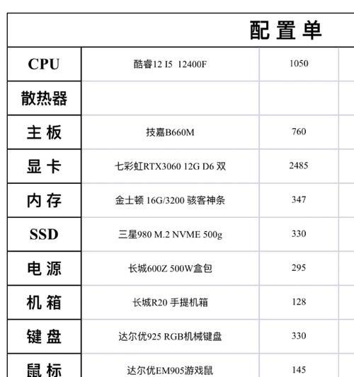 在这个高科技的时代,电脑已经成为我们生活中不可缺少的一部分。但是市面上的电脑种类繁多,价格也参差不齐,而对于初学者来说,如何挑选一款性价比高的电脑显得十分困难。本文将为大家推荐一些以电脑组装配置单为基础的高性价比电脑,帮助大家轻松打造一款适合自己的办公游戏两不误的电脑。