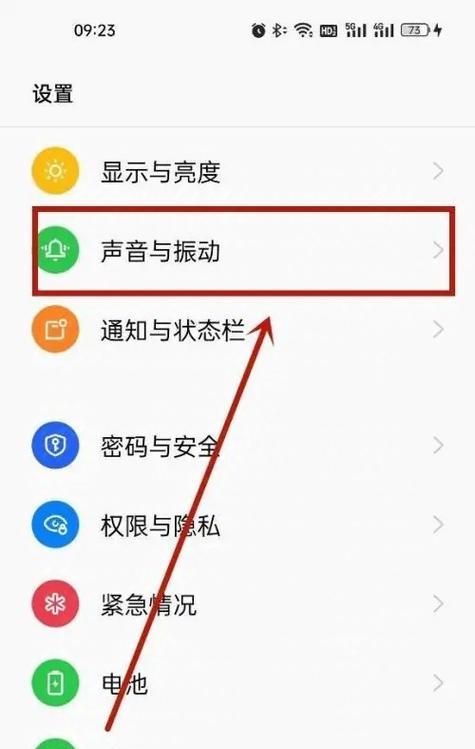 在设置菜单中,找到声音和振动选项,并点击进入。