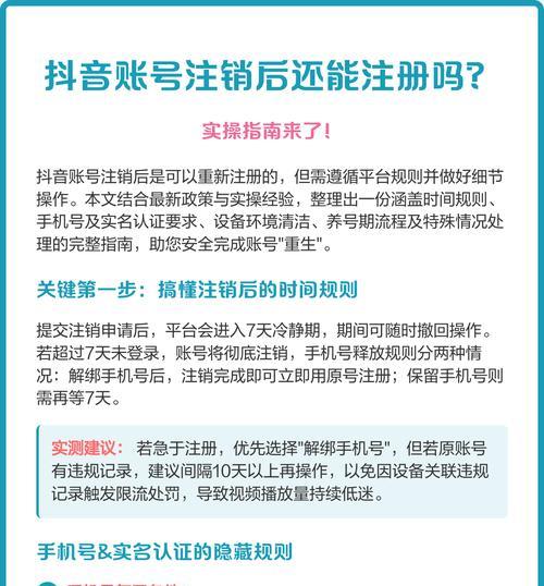 抖音是现在最火的短视频平台之一,许多人都会使用抖音来记录自己的生活和分享自己的创意。但是,有时候我们可能会不小心把自己的抖音账号给注销了,这时候有没有重新注册的机会呢?下面我们就来探究一下这个问题。